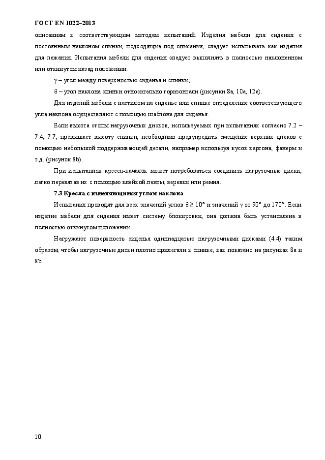 Стандарт не распространяется на мебель для сидения с механизмом регулирования, при котором спинка располагается под углом 10° или менеее к горизонтальной плоскости