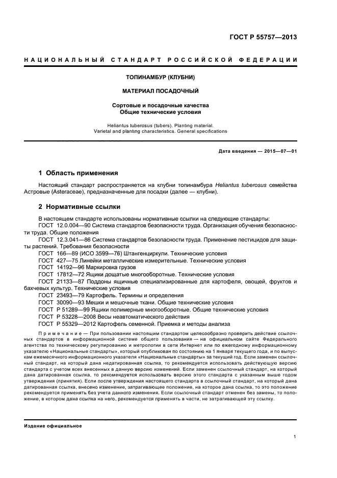 Настоящий стандарт распространяется на клубни топинамбура Heliantus tuberosus семейства Астровые (Asteraceae), предназначенные для посадки