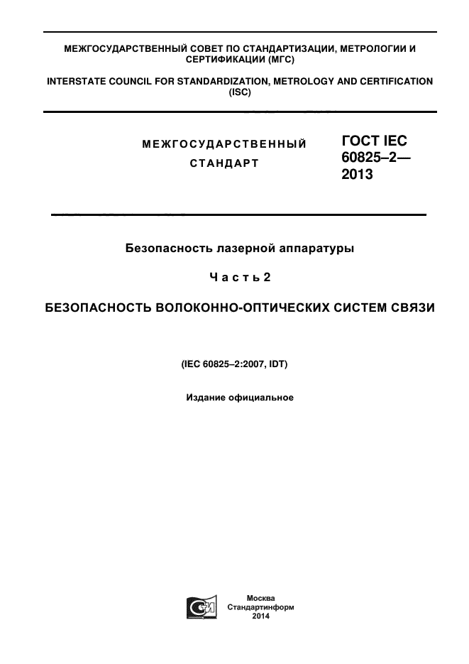 | Обозначение: | ГОСТ IEC 60825-2-2013 |