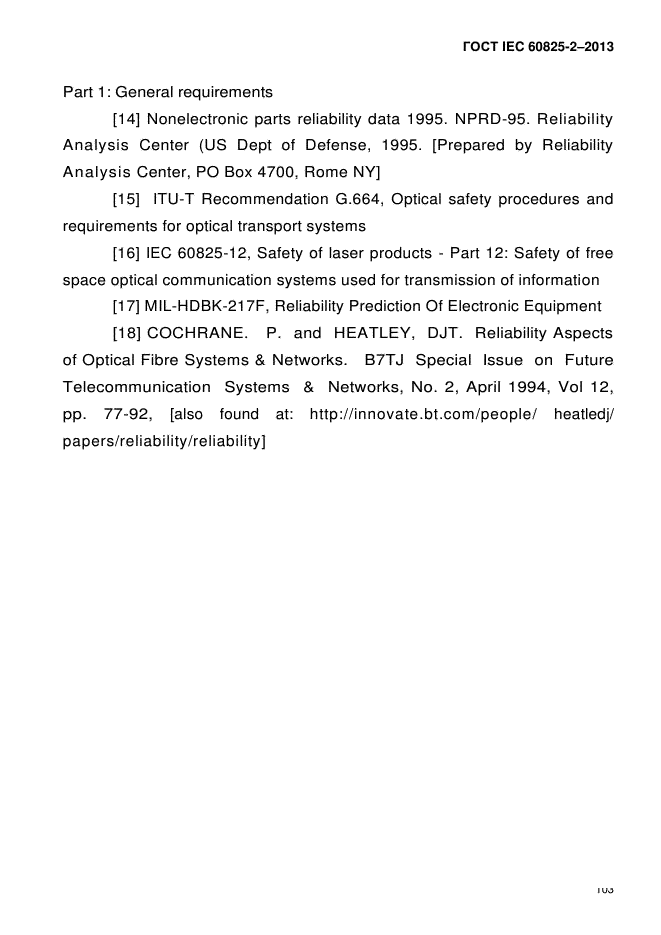 | Название рус.: | Безопасность лазерной аппаратуры. Часть 2. Безопасность волоконно-оптических систем связи |