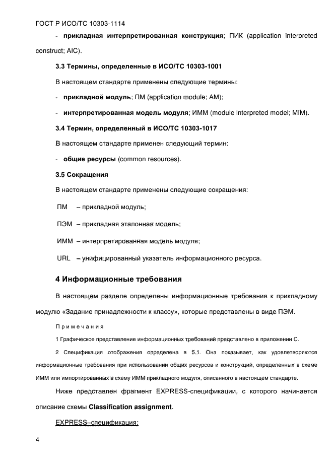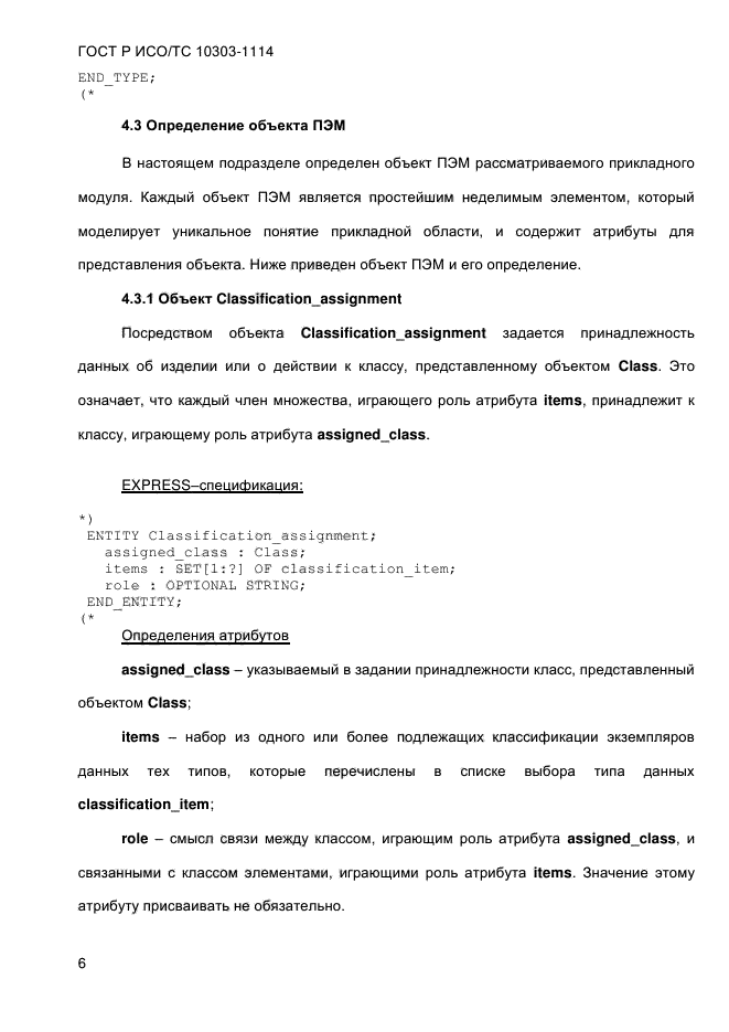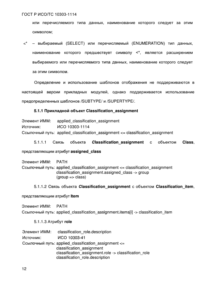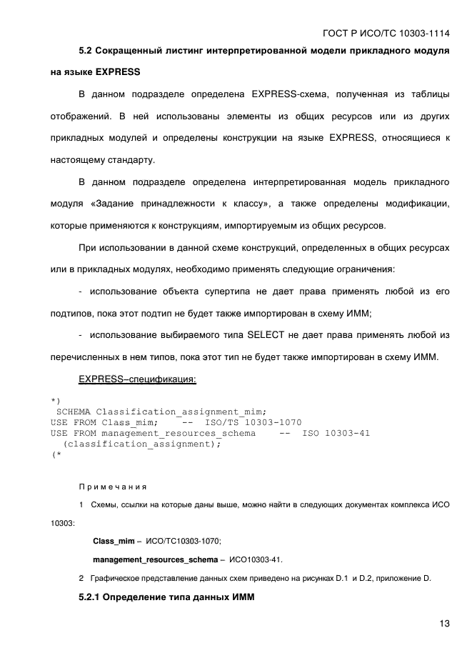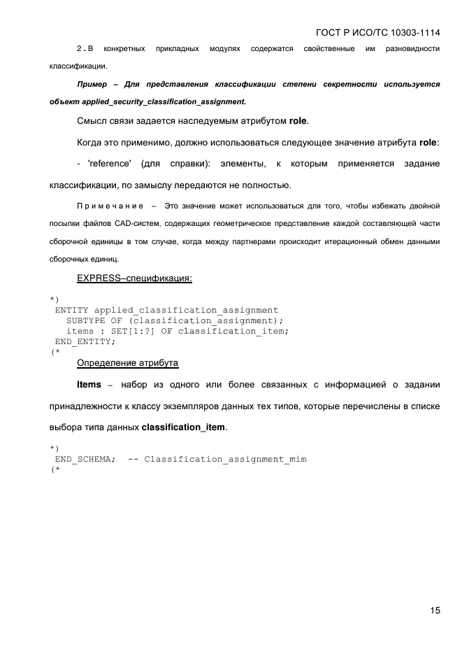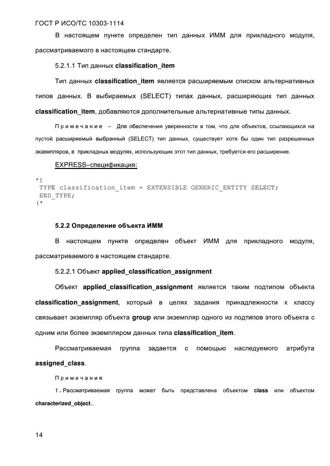 | Область и условия применения: | Настоящий стандарт определяет прикладной модуль «Задание принадлежности к классу». В область применения настоящего стандарта входит задание принадлежности данных об изделии или действии к классу.