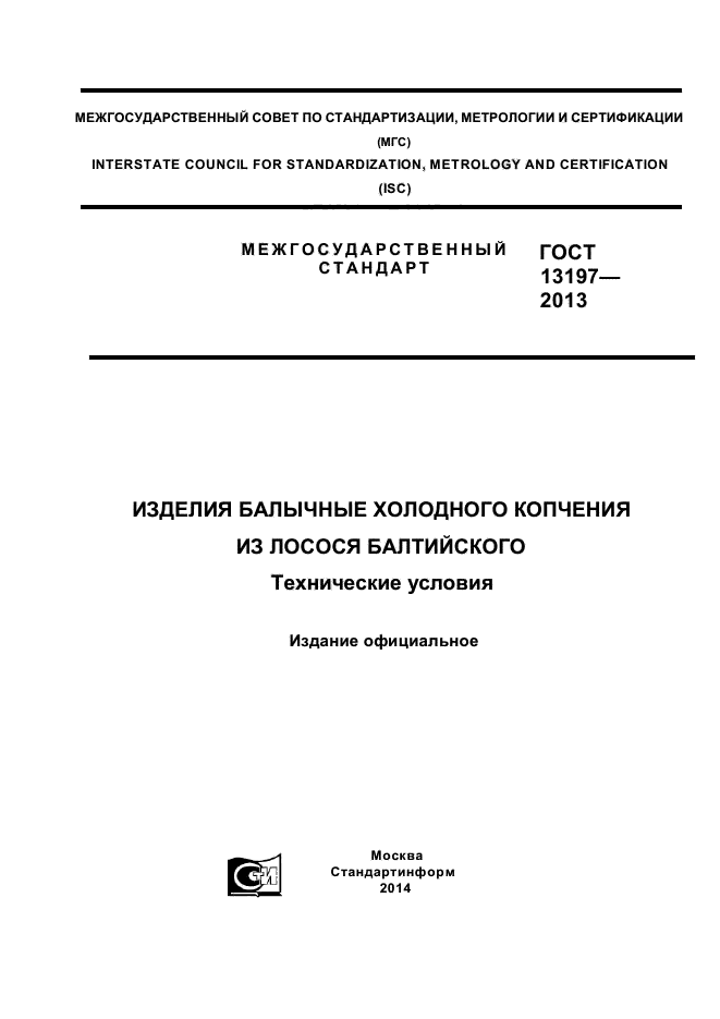 | Название рус.: | Изделия балычные холодного копчения из лосося балтийского. Технические условия |