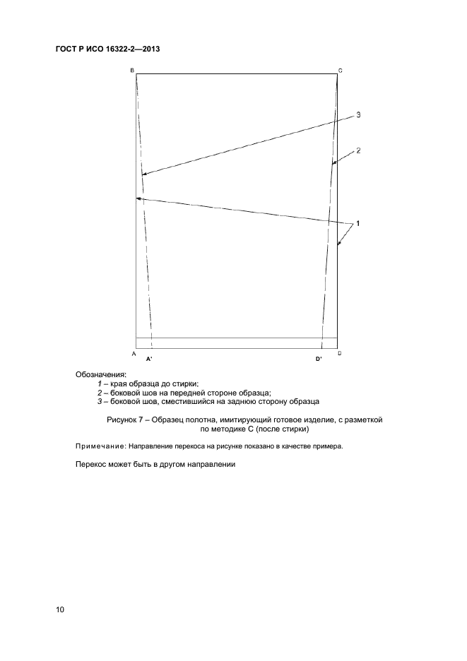 Эта часть ГОСТ Р ИСО 16322 не предназначена для измерения перекоса готовых полотен, а применима лишь к оценке перекоса после стирки