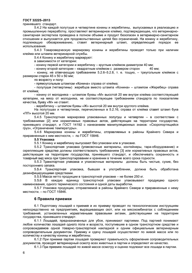 | Область и условия применения: | Настоящий стандарт распространяется на лошадей для убоя, конину и жеребятину в полутушах и четвертинах, предназначенные для реализации в розничной торговле, сети общественного питания и промышленной переработки на пищевые цели |