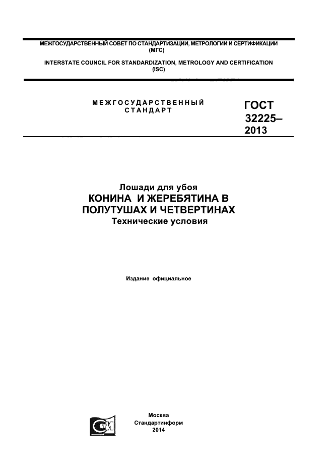 | Название рус.: | Лошади для убоя. Конина и жеребятина в полутушах и четвертинах. Технические условия |