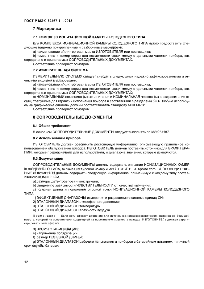 Настоящий стандарт определяет характеристики и некоторые взаимосвязанные конструктивные требования к ионизационным камерам колодезного типа и присоединенной измерительной аппаратуры, определенной в классе 3, предназначенной для определения величины воздушной кермы или опорной воздушной кермы в полях фотонного излучения или поглощенной дозы в воде на глубине в полях фотонного и бета-излучений, используемых в брахитерапии после соответствующей калибровки для источника излучения данного типа.