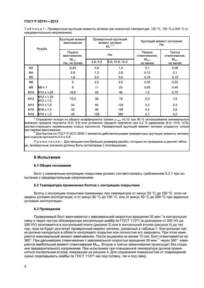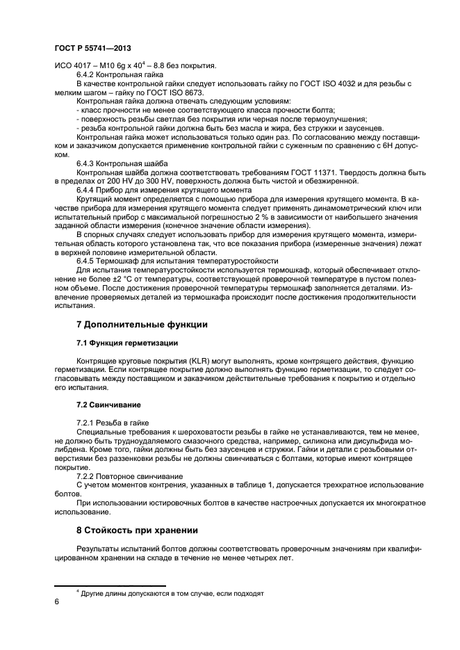 | Область и условия применения: | Настоящий стандарт устанавливает функциональные свойства контрящих покрытий на стальных болтах, винтах и шпильках (далее - болты) с: