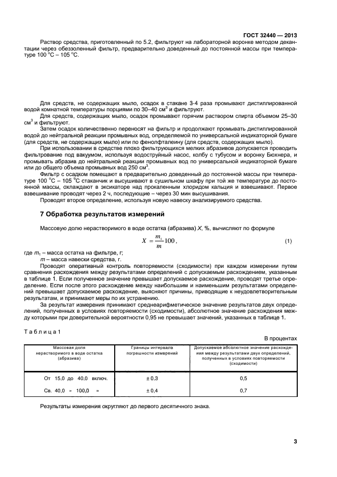 Метод основан на термогравиметрическом определении нерастворимого в воде остатка (абразива), выделенного фильтрованием из водного раствора средства