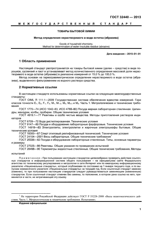 Настоящий стандарт распространяется на товары бытовой химии (далее – средства) в виде порошков, суспензий и паст и устанавливает метод количественного определения массовой доли нерастворимого в воде остатка (абразива) в диапазоне измерений от 15,0 % до 100,0 %.