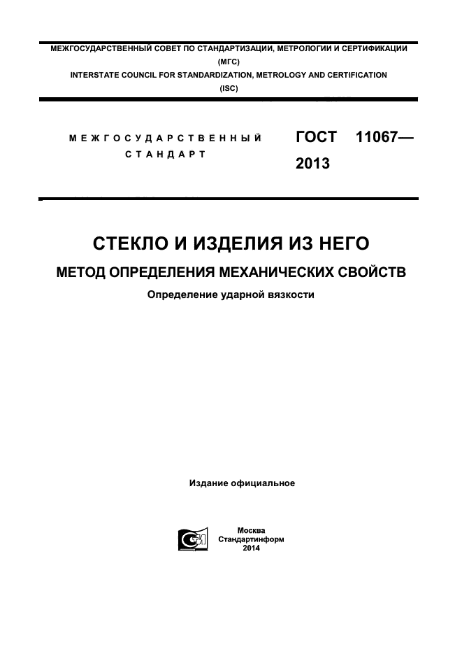 | Область и условия применения: | Настоящий стандарт устанавливает метод определения ударной вязкости и распространяется на стекло, изделия из него и стеклокристаллические материалы (стекло листовое, закаленное, термоупрочненное, стекло с покрытием, многослойное стекло, ситаллы, шлакоситаллы и т. д.).