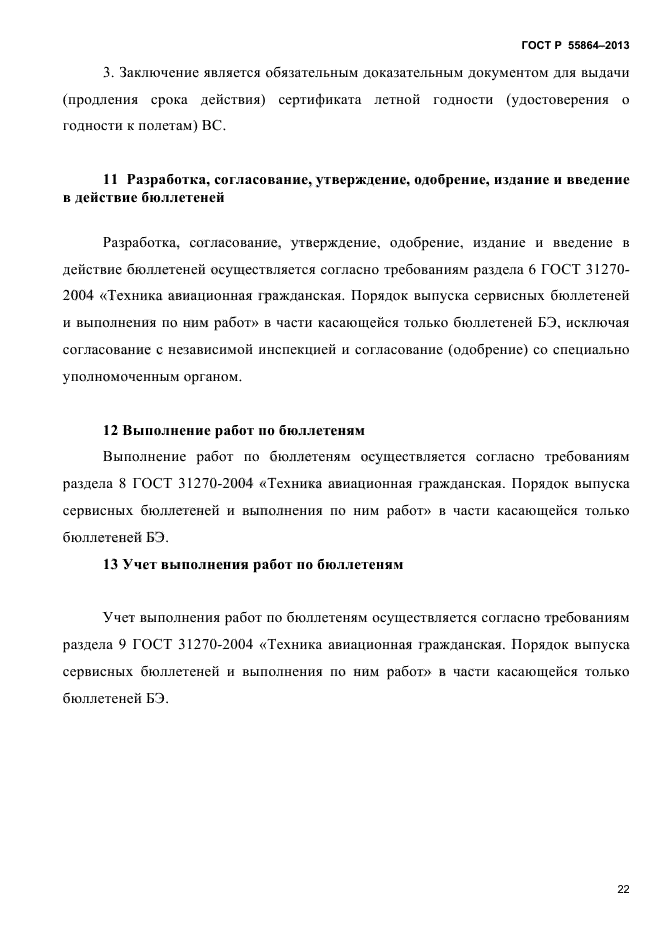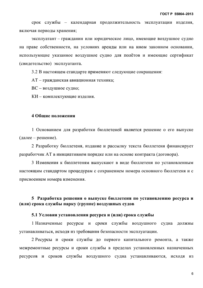 Настоящий стандарт определяет порядок выпуска обязательных эксплуатационных бюллетеней БЭ, содержащих обязательную информацию по поддержанию лётной годности в части установления ресурсов и (или) сроков службы гражданским самолётам и вертолетам, указанным в п.1.1 (далее – воздушные суда), включая контроль выполнения условий отработки ресурсов и (или) сроков службы. При модификации, изменении целевого назначения или условий эксплуатации воздушных судов ресурсы и (или) сроки службы должны быть вновь установлены в порядке, изложенном в настоящем стандарте |