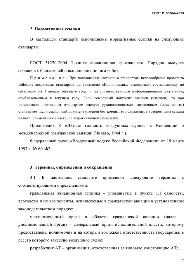 | Область и условия применения: | Настоящий стандарт распространяется на гражданские самолёты и вертолёты серийного производства (исключая самолёты и вертолёты с сертификатом типа), допущенные к эксплуатации в установленном в СССР порядке и находящиеся в настоящее время в эксплуатации или эксплуатировавшиеся ранее (включая хранение) по документации, утвержденной иным уполномоченным органом, чем уполномоченный орган в области гражданской авиации Российской Федерации, перед их эксплуатацией в гражданской авиации Российской Федерации.