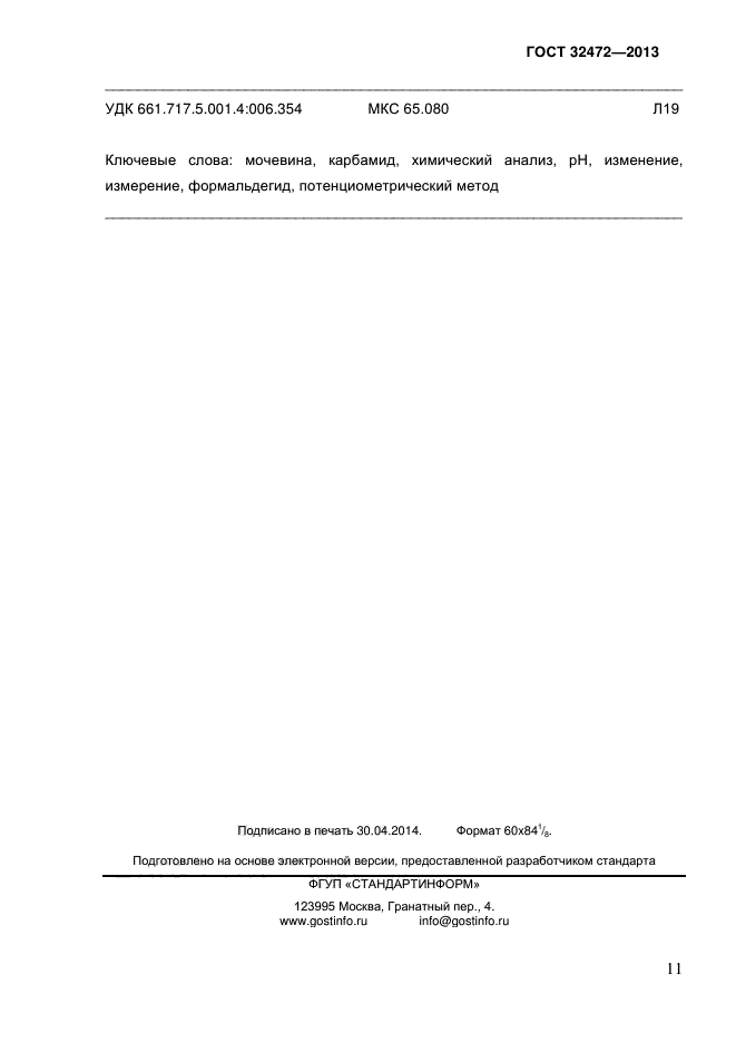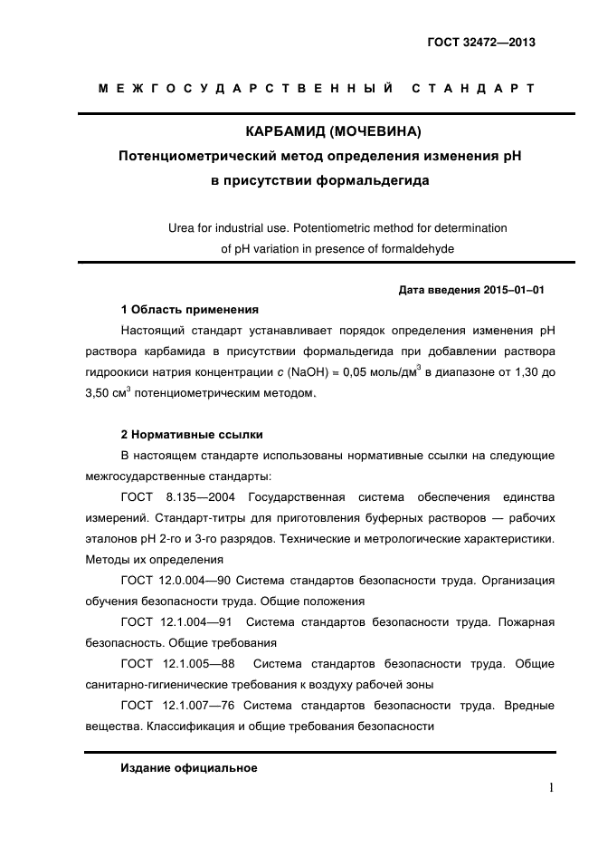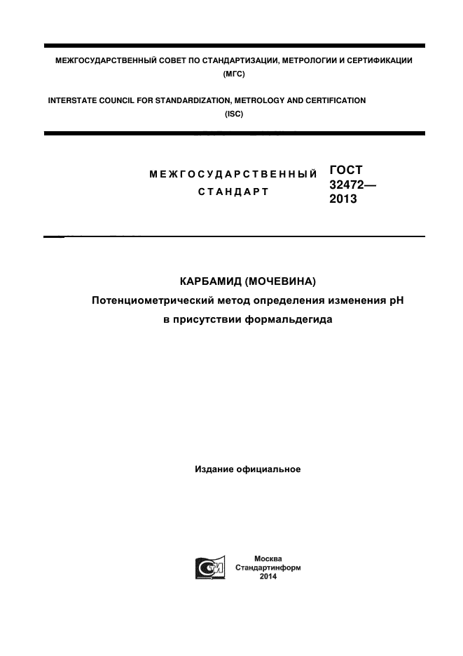 | Название рус.: | Карбамид (мочевина). Потенциометрический метод определения изменения рН в присутствии формальдегида |