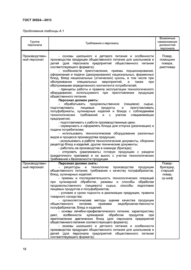 Настоящий стандарт устанавливает общие минимальные требования к персоналу предприятий общественного питания различных типов всех организационно-правовых форм и форм собственности.