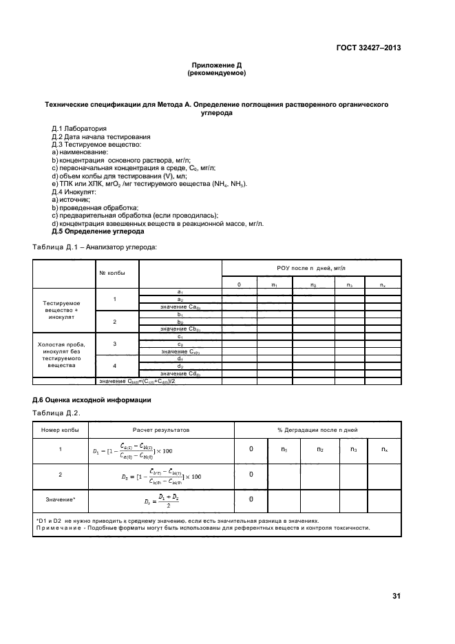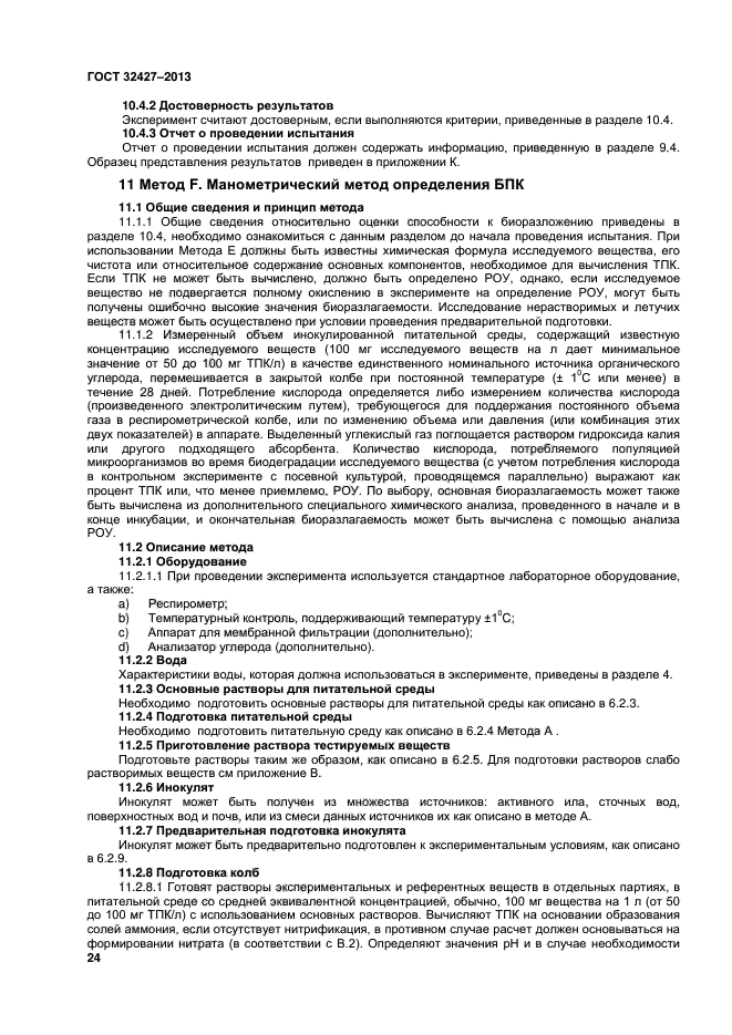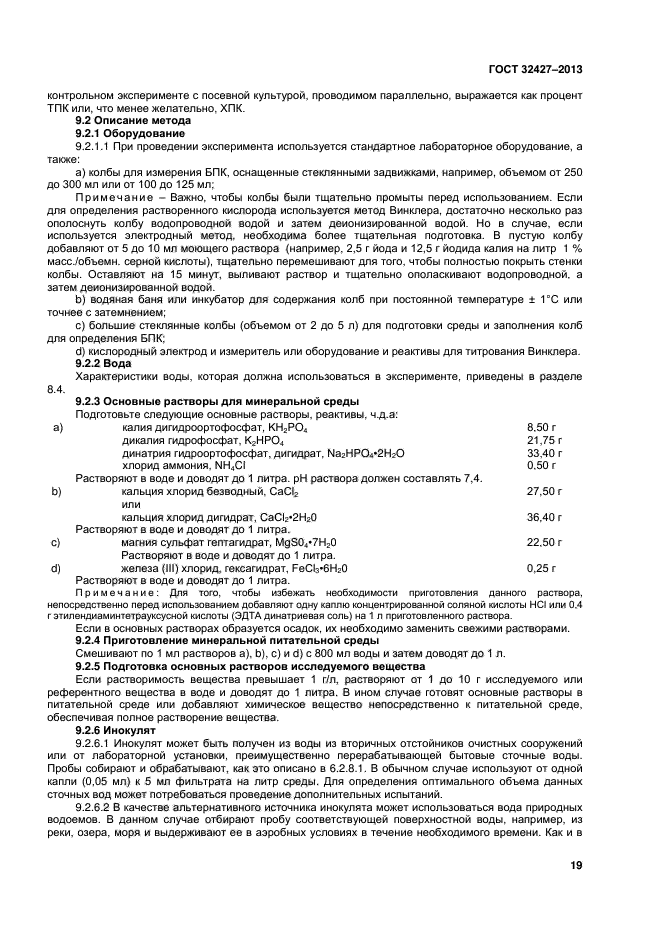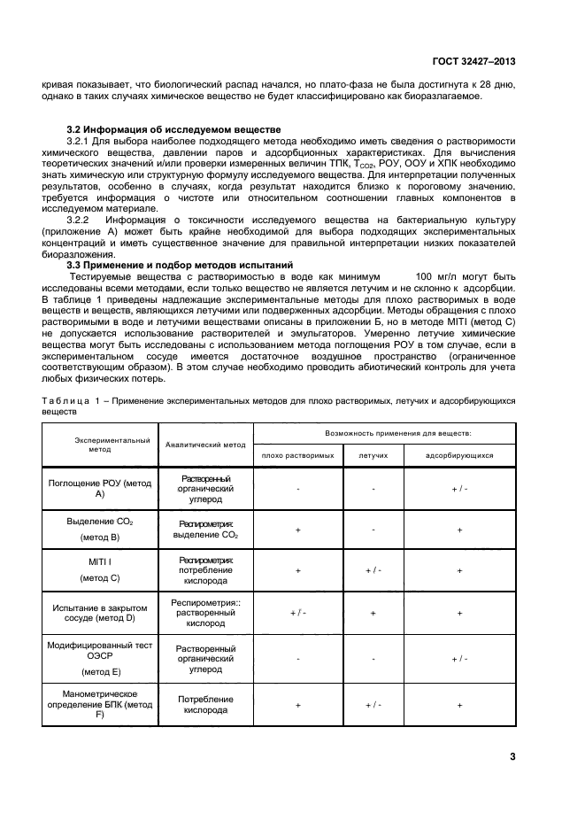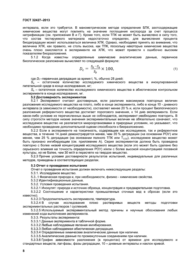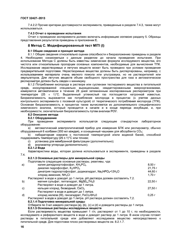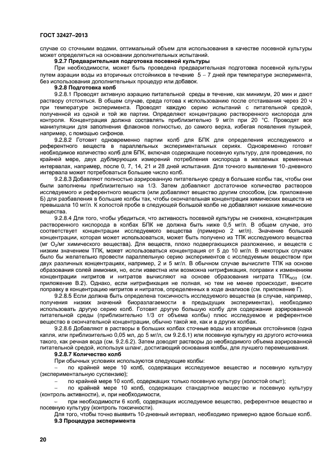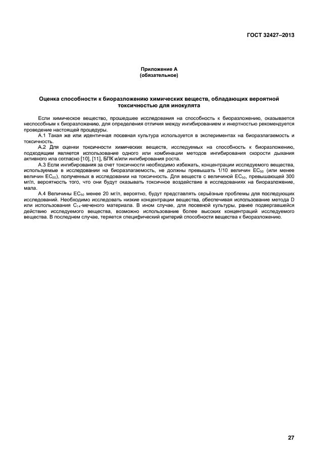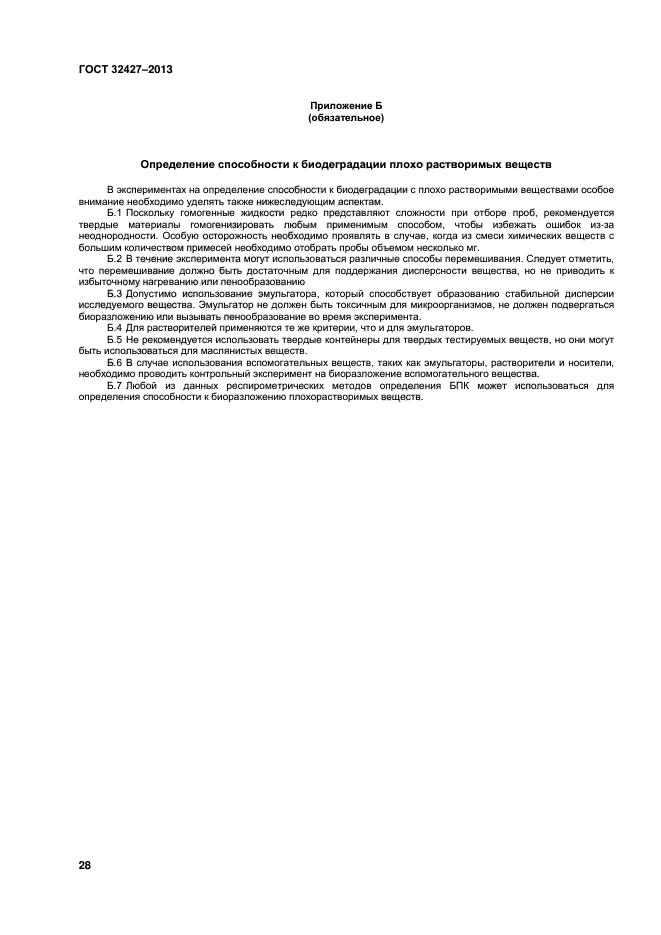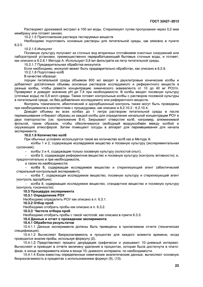 | Область и условия применения: | Настоящий стандарт устанавливает методы испытаний для определения способности химических веществ подвергаться биоразложению в аэробной водной среде |