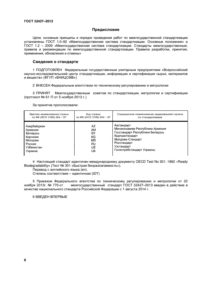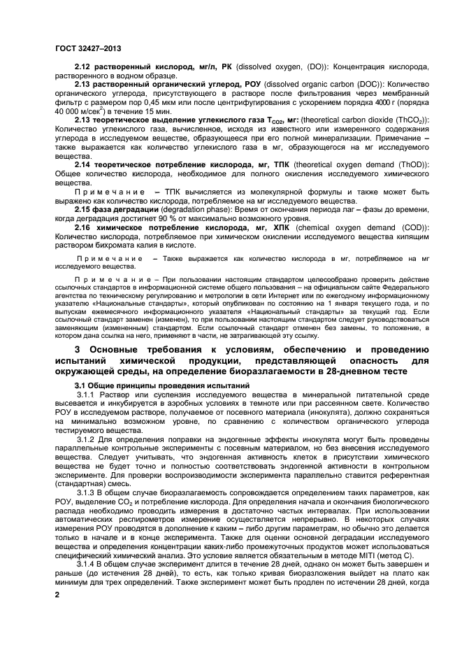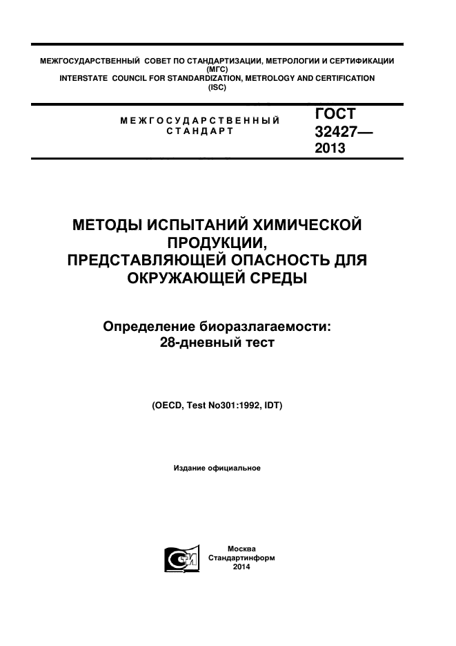 | Название рус.: | Методы испытаний химической продукции, представляющей опасность для окружающей среды. Определение биоразлагаемости. 28-дневный тест |