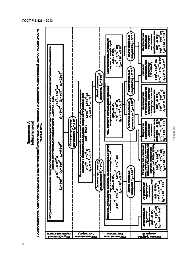 Настоящий стандарт распространяется на государственную поверочную схему для средств измерений амплитуды ультразвуко-вого смещения и колебательной скорости поверхности твердых сред [рисунок А.1 (приложение А)] и устанавливает порядок передачи единиц амплитуды ультразвуко-вого смещения - метр (м), в диапазоне от 5*10 в степени минус 11 до 5*10 в степени минус 10 м, и колебательной скорости поверхности твердых сред - метр в секунду (м/с), в диапазоне от 2*10 в степени минус 4 до 1*10 в степени минус 3 м/с, от государственного первичного эталона единиц амплитуды ультразвукового смещения и колебательной скорости поверхности твердых сред (далее - государственный первичный эталон) с помощью рабочих эталонов - рабочим средствам измерений с указанием погрешностей и основных методов поверки.