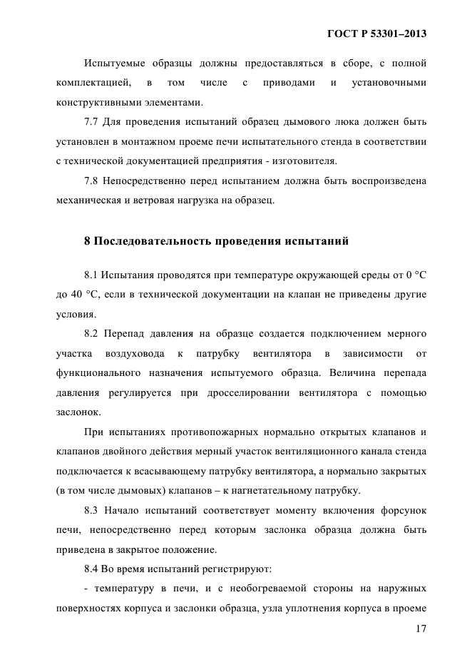 | Область и условия применения: | Настоящий стандарт устанавливает метод испытания на огнестойкость следующих конструкций: