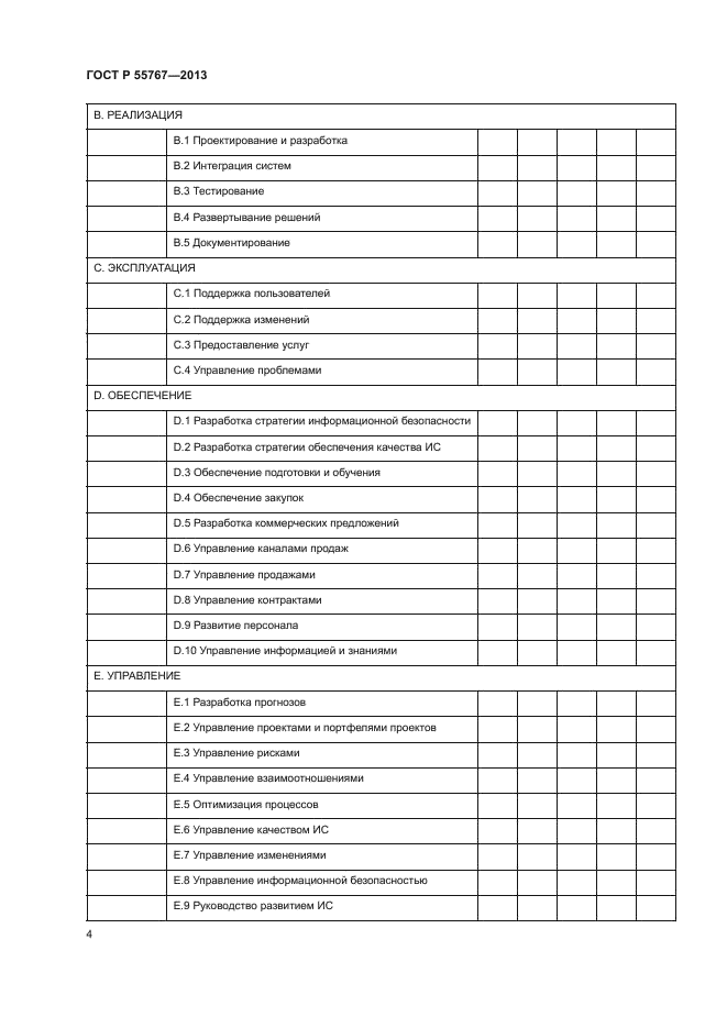 | Область и условия применения: | Европейская рамка ИКТ-компетенций (The European e-Competence Framework, далее e-CF) представляет собой рамочную структуру описания ИКТ-компетенций, которая может быть использована и признаваема как компаниями-производителями услуг и продуктов ИКТ, так и компаниями, использующими ИКТ в своей основной деятельности, а также ИТ-специалистами, ИТ-руководителями, сотрудниками кадровых служб, представителями государственных, образовательных учреждений и социальными партнерами в европейских странах |