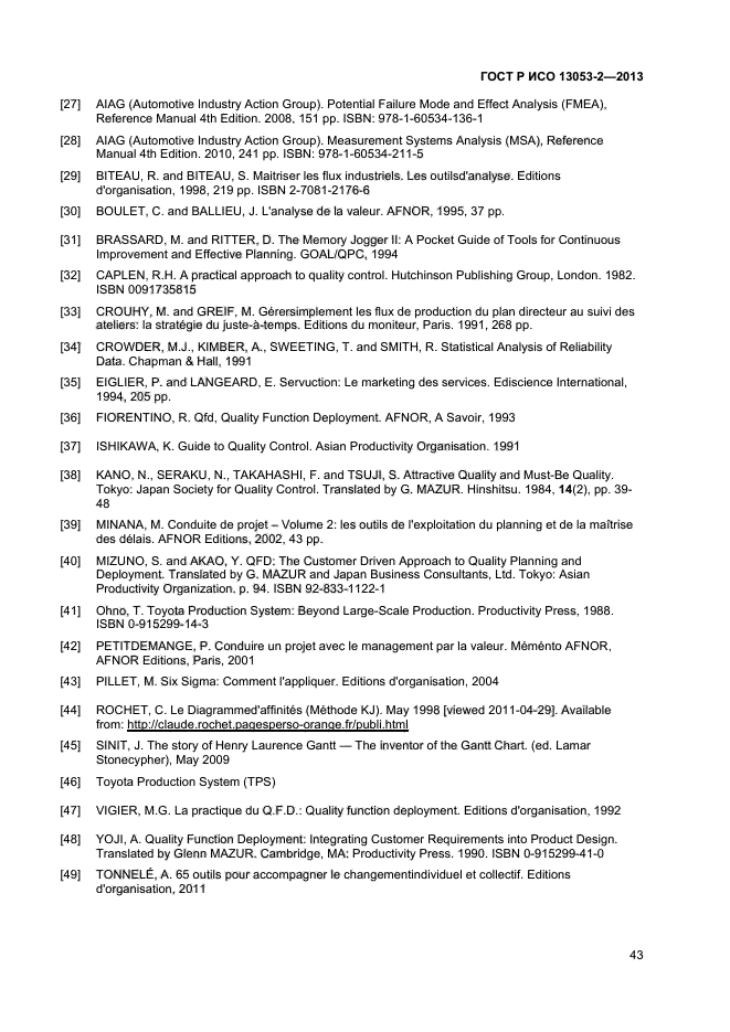 | Название рус.: | Статистические методы. Количественные методы управления процессами Шесть сигм. Часть 2. Методы и приемы. Разработка ГОСТ Р. Прямое применение МС с дополнением -EQV (ISO 13053-2:2011). |