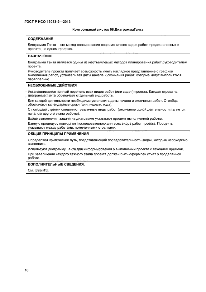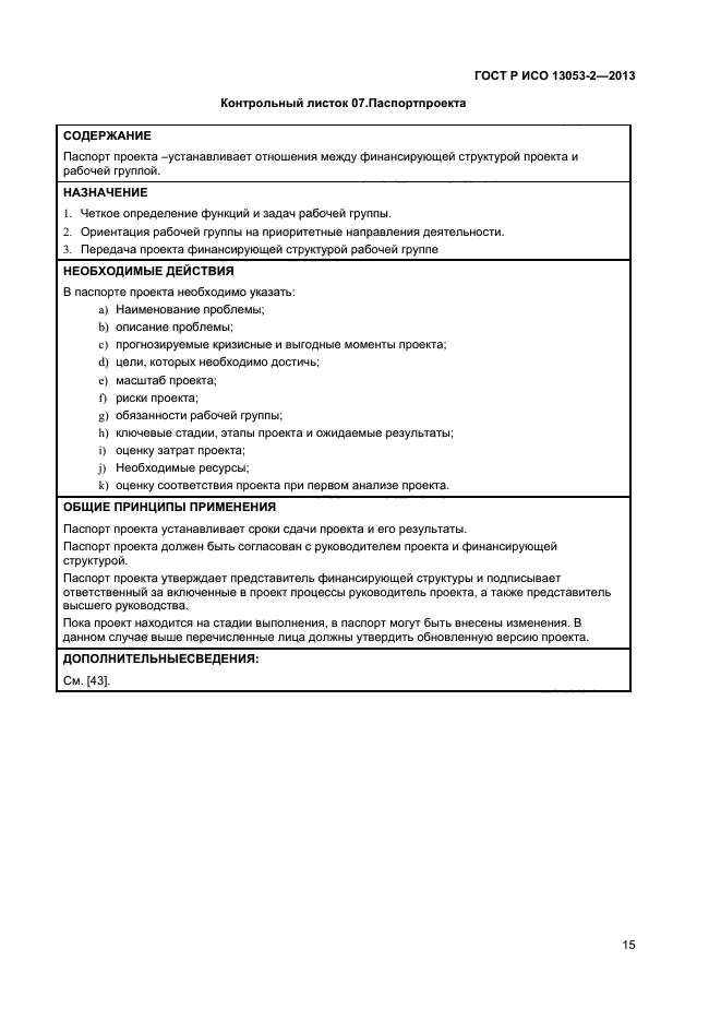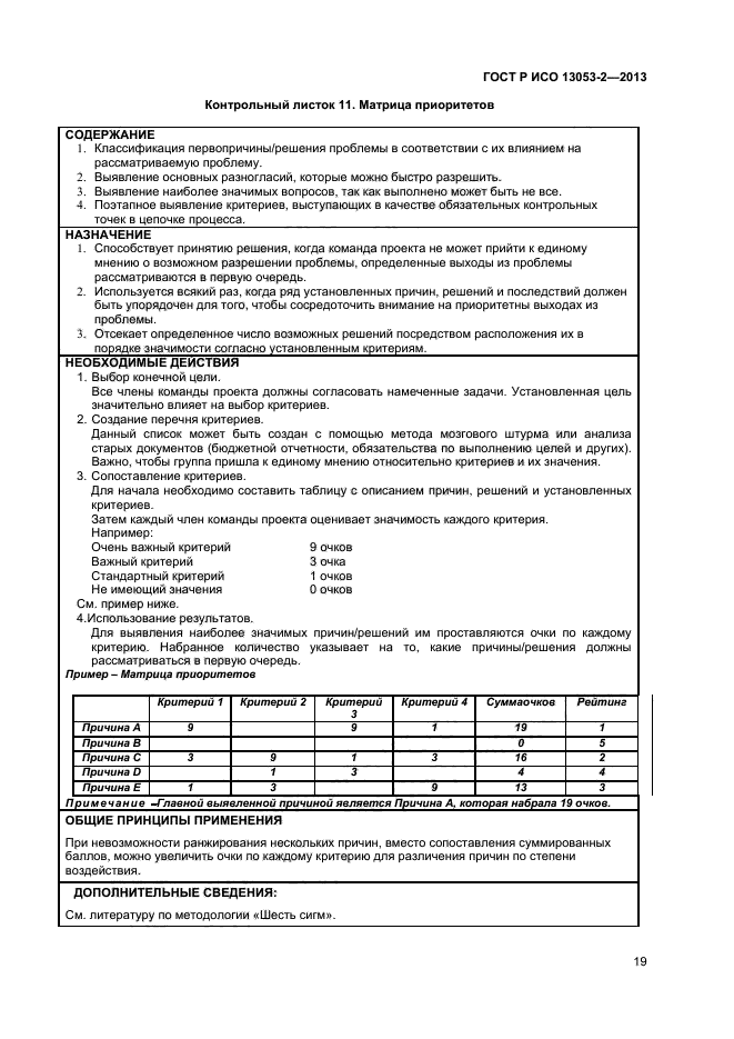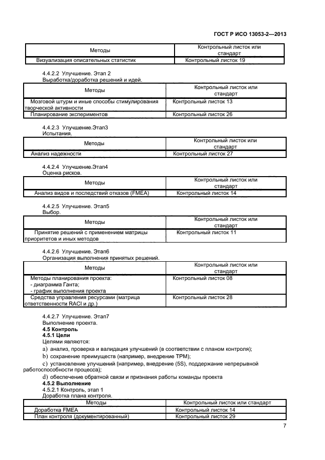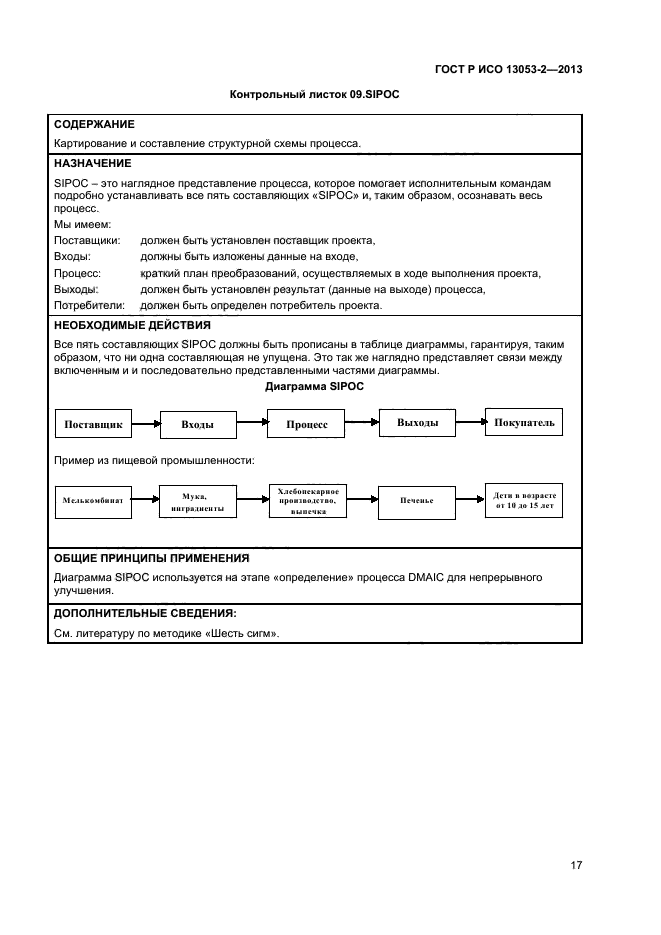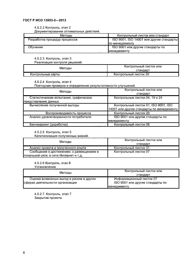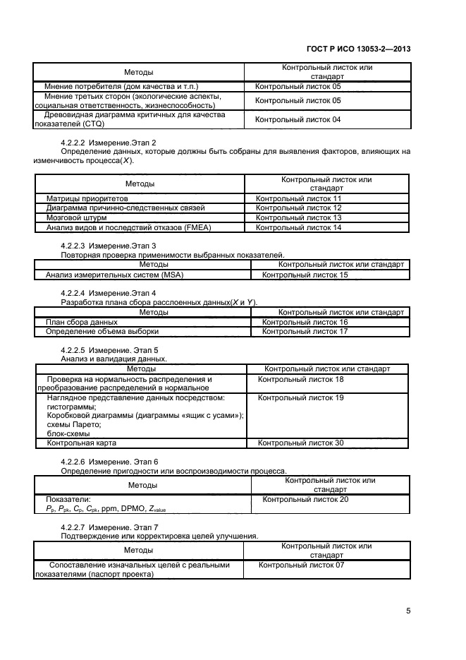 В настоящем стандарте приведены методы и приемы, проиллюстрированные в соответствующих контрольных листках, которые должны быть использованы на каждом этапе выполнения методологии DMAIC.