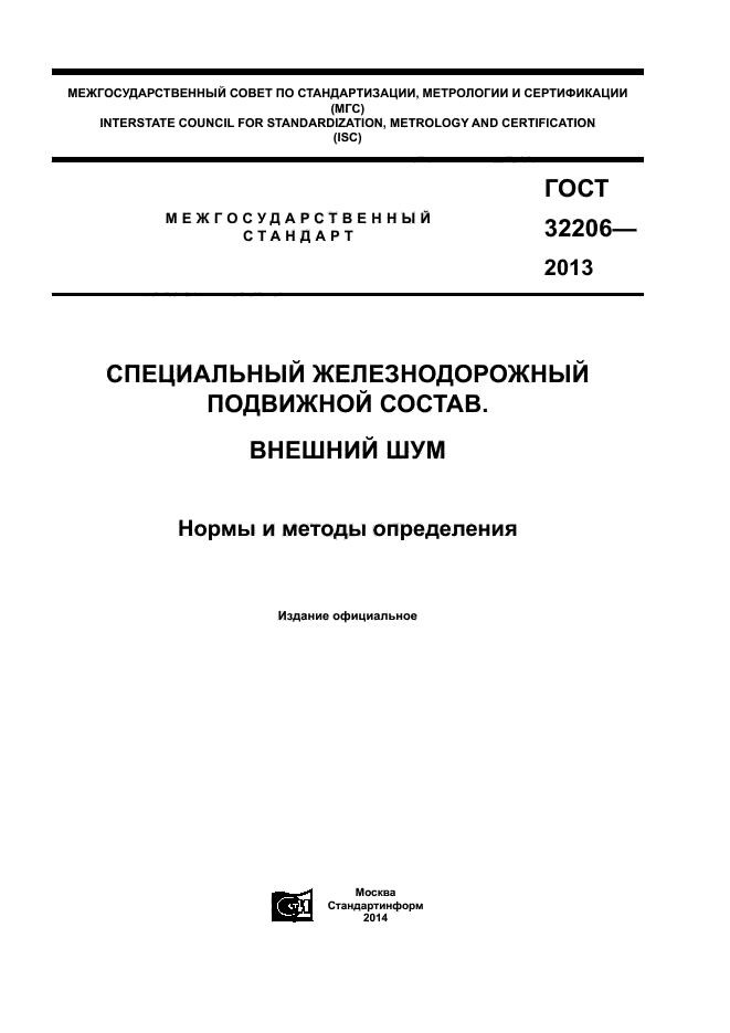 | Область и условия применения: | Настоящий стандарт устанавливает допустимые уровни внешнего шума (уровни звука) специального железнодорожного подвижного состава и методы их определения при периодических и типовых испытаниях, а также при подтверждении соответствия обязательным требованиям, установленным нормативными правовыми актами в сфере технического регулирования, действующими на территории государства, принявшего стандарт, и в случаях, предусмотренных разделом 4 настоящего стандарта |