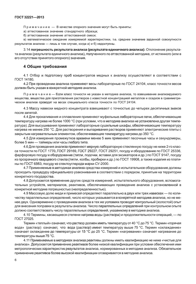 | Область и условия применения: | Настоящий стандарт устанавливает общие требования к методам анализа медных концентратов, требования безопасности при проведении анализа, методы определения массовых долей меди и примесей в медных концентратах |