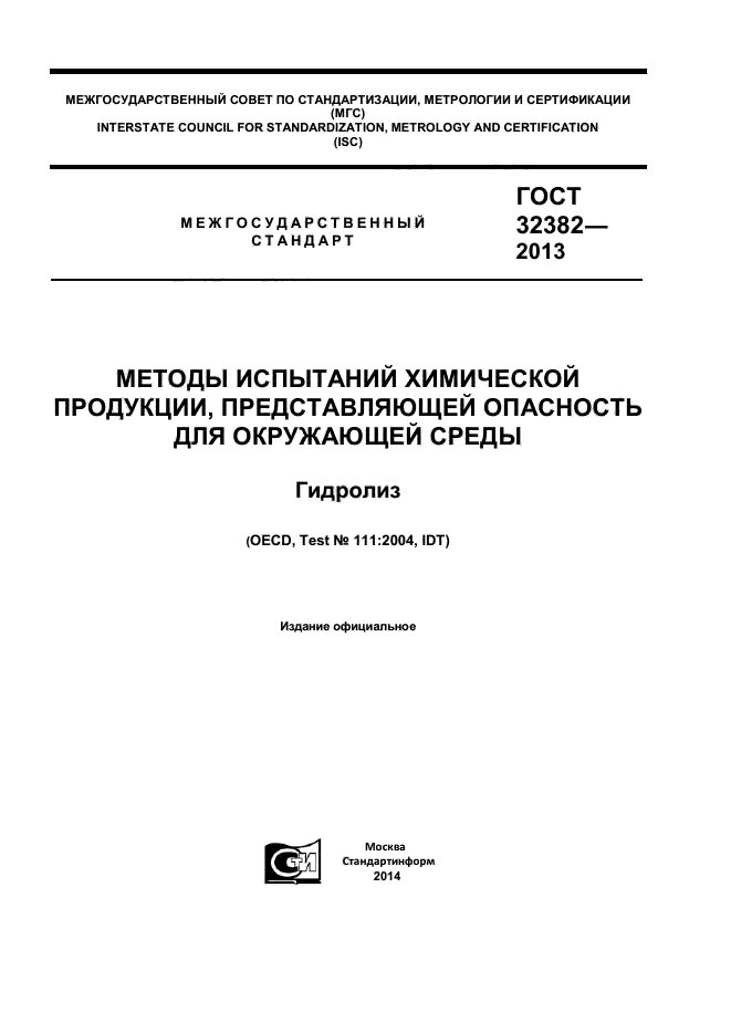 | Название рус.: | Методы испытаний химической продукции, представляющей опасность для окружающей среды. Гидролиз. |