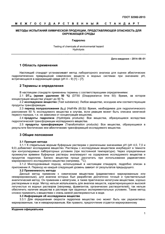 | Область и условия применения: | Настоящий стандарт устанавливает метод лабораторного анализа для оценки абиотических гидролитических превращений химических веществ в водных системах при значениях pH, встречающихся в окружающей среде (pH 4 – 9) [1] – [7] |