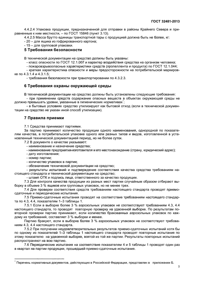 | Область и условия применения: | Настоящий стандарт распространяется на товары бытовой химии в металлической аэрозольной упаковке с пропеллентом (далее - средства) и устанавливает общие требования, обеспечивающие безопасность жизни и здоровья населения, охрану окружающей среды и предупреждение действий, вводящих в заблуждение потребителей путем предоставления недостоверной информации о средствах |