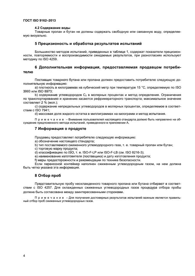 | Область и условия применения: | Настоящий стандарт устанавливает характеристики, определяет дополнительную информацию, предоставляемую потребителю продавцом сжиженных углеводородных газов (см. ISO 8216-3), и предназначен для применения при международных поставках товарных пропана и бутана. Настоящий стандарт не отменяет национальные стандарты других государств, т. к. в каждом государстве имеются собственные нормативные документы, правила техники безопасности, отраслевая практика и рынки сбыта. Требуемые характеристики для конкретных целей должны быть сформулированы с учетом конкретных требований потребителей в соответствии с национальными стандартами и правилами техники безопасности |