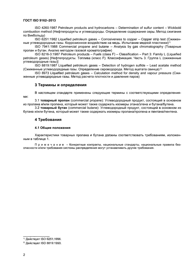 Настоящий стандарт устанавливает характеристики, определяет дополнительную информацию, предоставляемую потребителю продавцом сжиженных углеводородных газов (см. ISO 8216-3), и предназначен для применения при международных поставках товарных пропана и бутана. Настоящий стандарт не отменяет национальные стандарты других государств, т. к. в каждом государстве имеются собственные нормативные документы, правила техники безопасности, отраслевая практика и рынки сбыта. Требуемые характеристики для конкретных целей должны быть сформулированы с учетом конкретных требований потребителей в соответствии с национальными стандартами и правилами техники безопасности