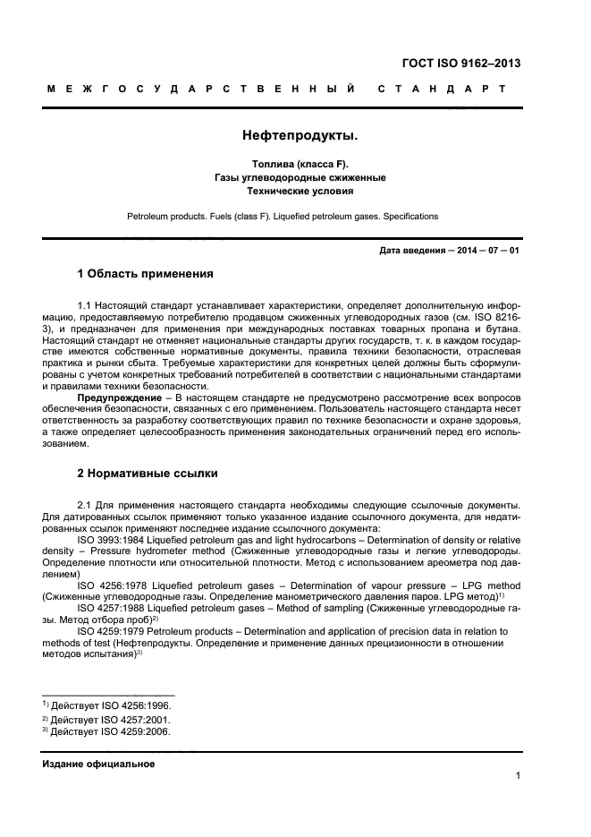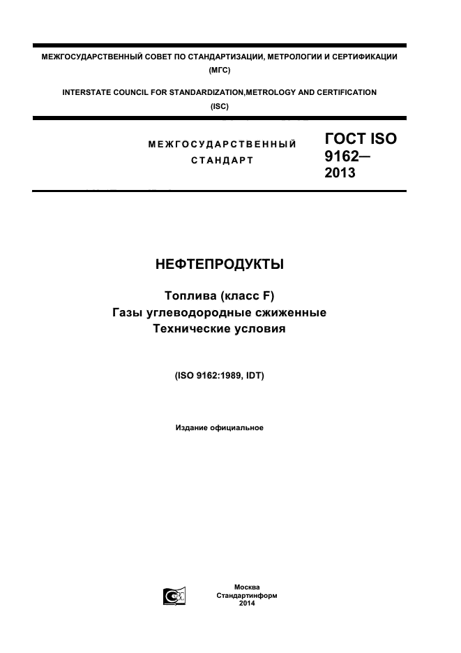 | Название рус.: | Нефтепродукты. Топливо (класс F). Сжиженные нефтяные газы. Технические условия. Разработка ГОСТ. Прямое применение МС - IDT (ISO 9162:1989). |
