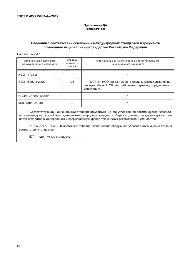 Настоящий стандарт устанавливает также технические требования к очистке и дезинфекции самой моюще-дезинфицирующей машины и ее частей и приспособлений, которые могут требоваться для достижения необходимой работоспособности.