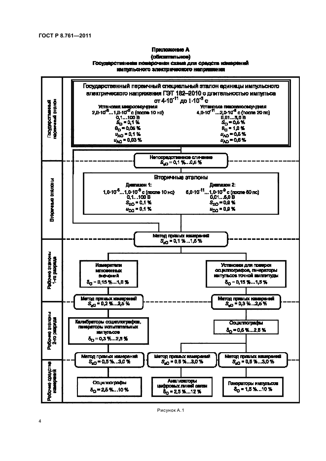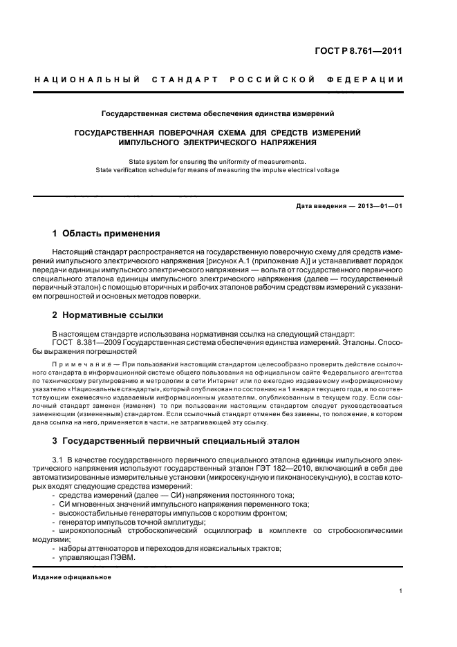 Настоящий стандарт распространяется на государственную поверочную схему для средств измерений импульсного электрического напряжения и устанавливает порядок передачи единицы импульсного электрического напряжения - вольта от государственного первичного специального эталона единицы импульсного электрического напряжения с помощью вторичных и рабочих эталонов рабочим средствам измерений с указанием погрешностей и основных методов поверки