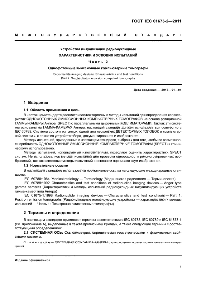 | Название рус.: | Устройства визуализации радионуклидные. Характеристики и условия испытаний. Часть 2. Однофотонные эмиссионные компьютерные томографы |
