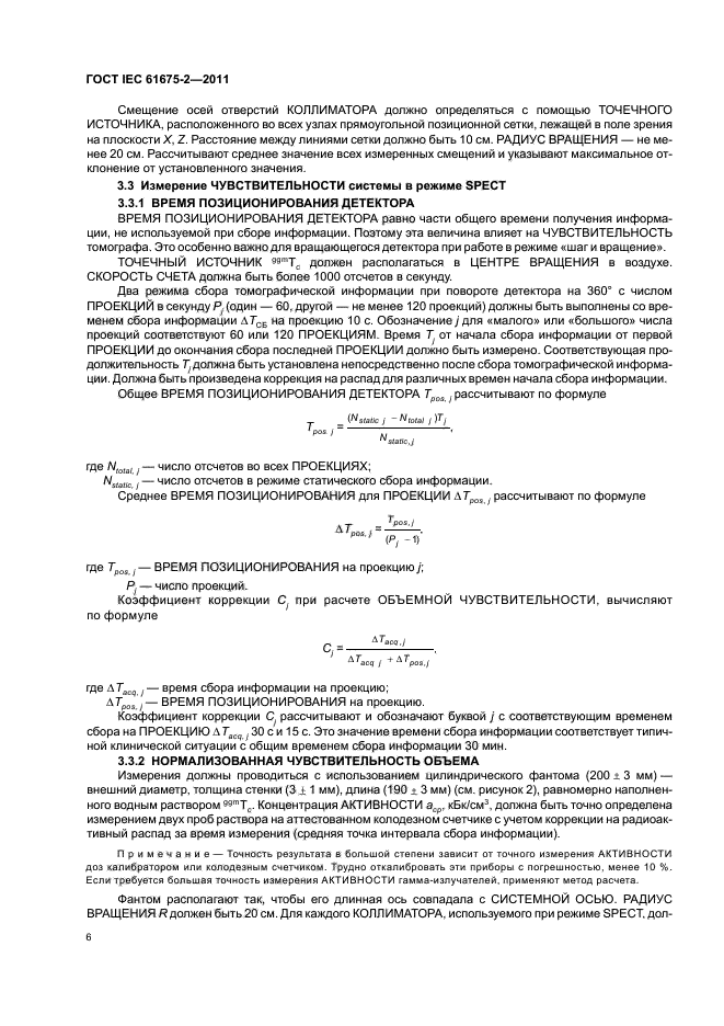 В настоящем стандарте рассматриваются термины и методы испытаний для определения характеристик однофотонных эмиссионных компьютерных томографов на основе ротационной гаммы-камеры Ангера (SPECT) с параллельными дырочными коллиматорами. Так как эти системы основаны на гамма-камерах Ангера, настоящий стандарт должен использоваться совместно с IEC 60789. Системы состоят из гантри, одной или нескольких детекторных головок и компьютерной системы, а также из устройств сбора, документирования и изображения