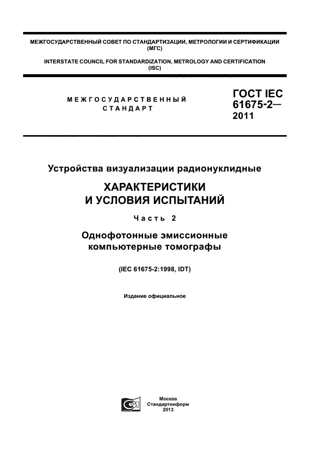 | Название англ.: | Radionuclide imaging devices. Characteristics and test conditions. Part 2. Single photon emission computed tomographs |