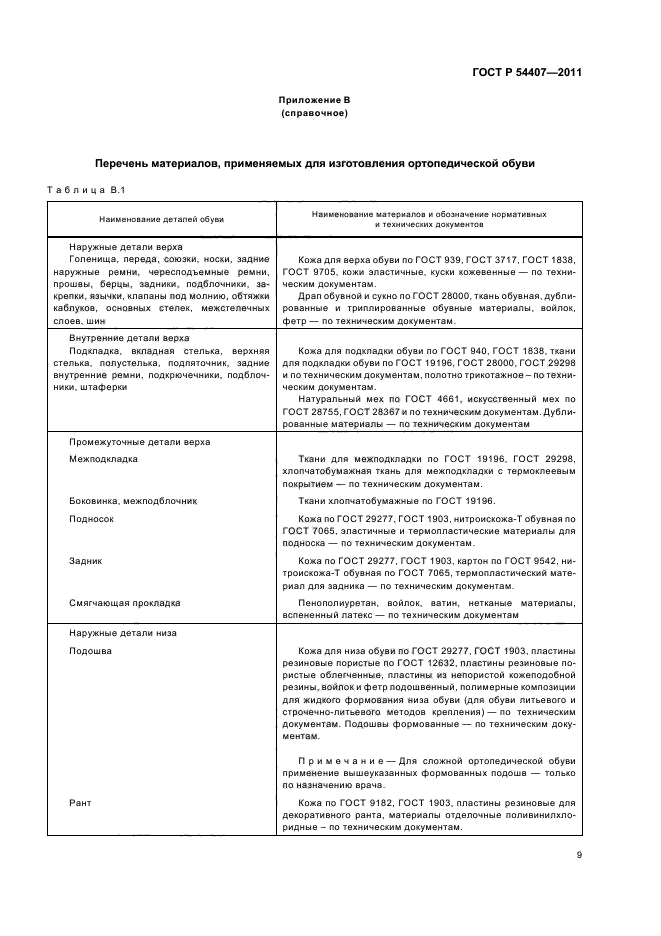 | Область и условия применения: | Настоящий стандарт распространяется на ортопедическую обувь с верхом из кожи, текстиля и комбинированную, предназначенную для взрослых и детей, имеющих медицинские показания к ее использованию |