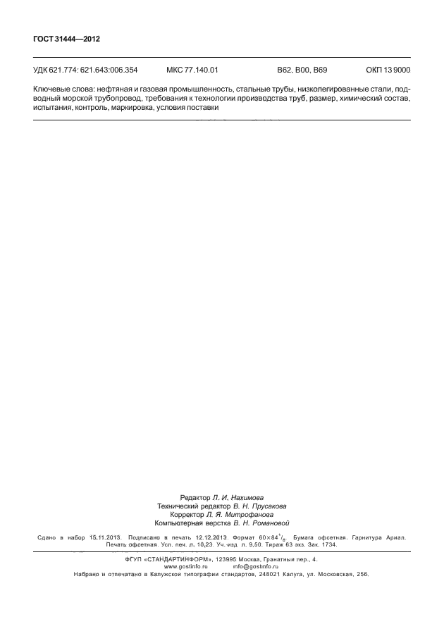 | Название рус.: | Трубы из низколегированных сталей для подводных морских трубопроводов. Общие технические условия |