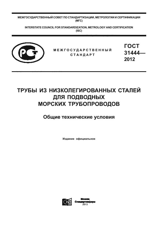 | Название англ.: | Pipes from low-alloy steel for submsrine sea pipelines. General specifications |