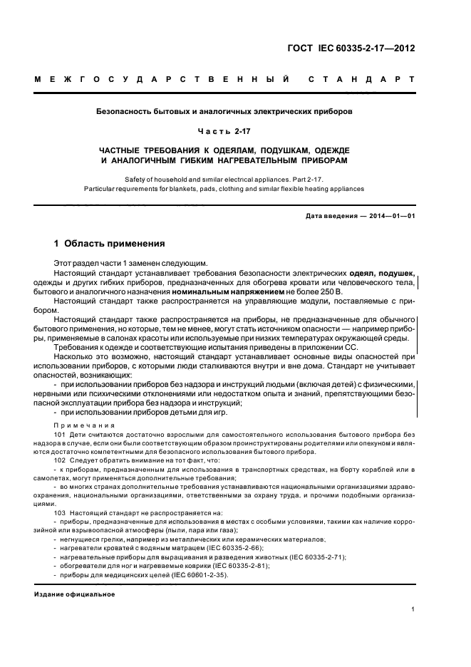 | Название англ.: | Safety of household and similar electrical appliances. Part 2-17. Particular requirements for blankets, pads, clothing and similar flexible heating appliances |