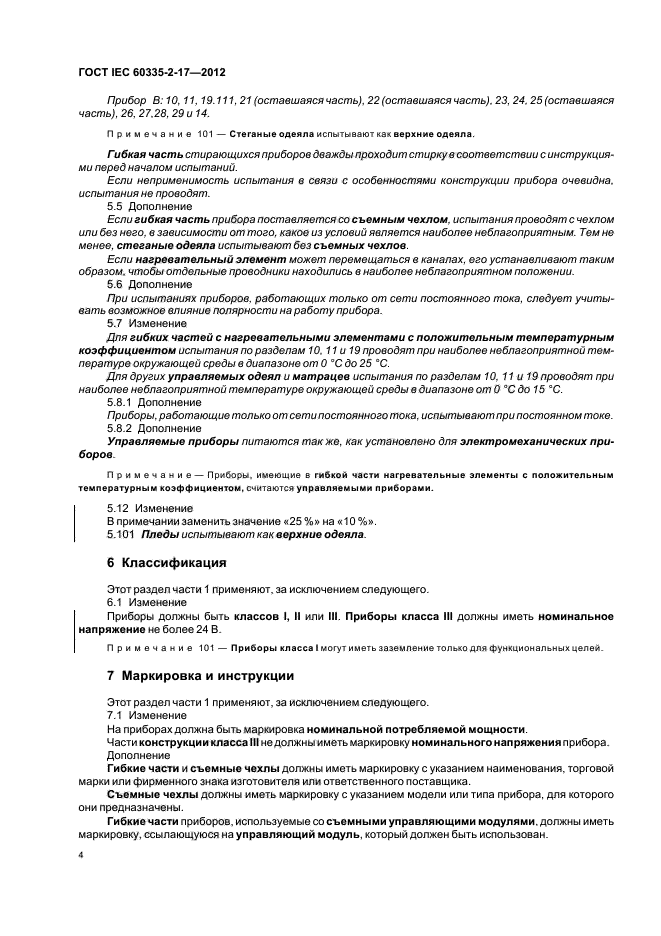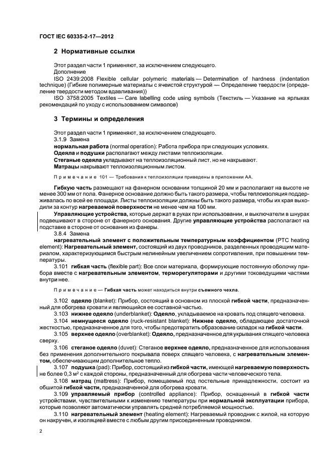 Настоящий стандарт устанавливает требования безопасности электрических одеял, подушек, одежды и других гибких приборов, предназначенных для обогрева кровати или человеческого тела, бытового и аналогичного назначения номинальным напряжением не более 250 В.