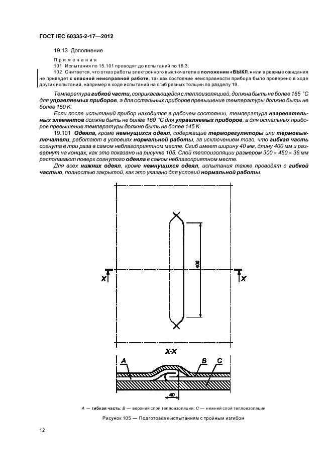 | Заменяющий: | ГОСТ IEC 60335-2-17-2014 Бытовые и аналогичные электрические приборы. Безопасность. Часть 2-17. Частные требования к одеялам, подушкам, одежде и аналогичным гибким нагревательным приборам |