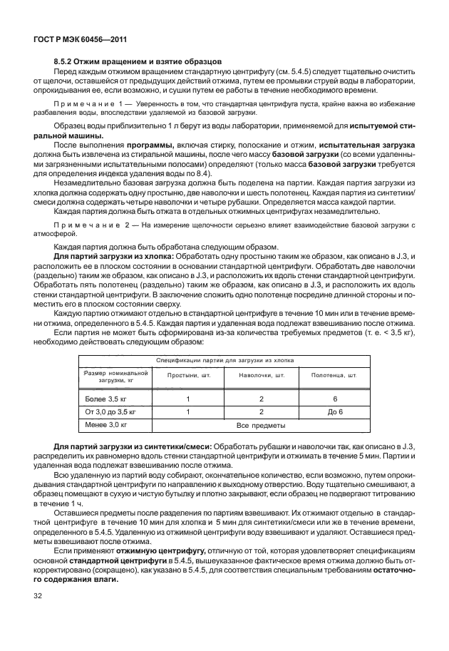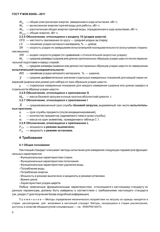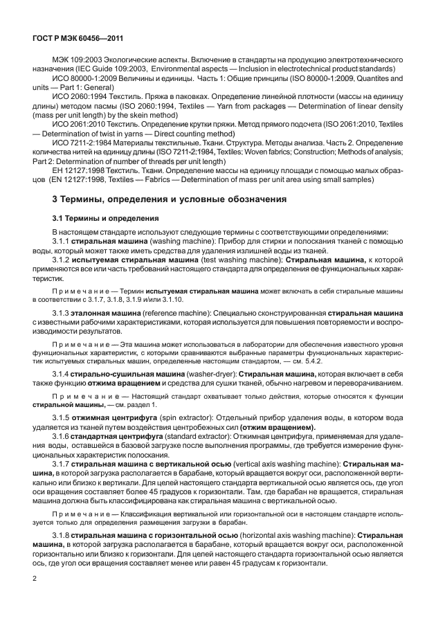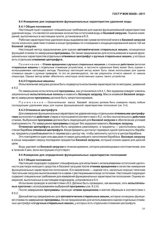 Целями настоящего стандарта являются обозначение и определение принципиальных функциональных характеристик электрических бытовых стиральных машин и отжимных центрифуг и описание стандартных методов измерения этих характеристик |