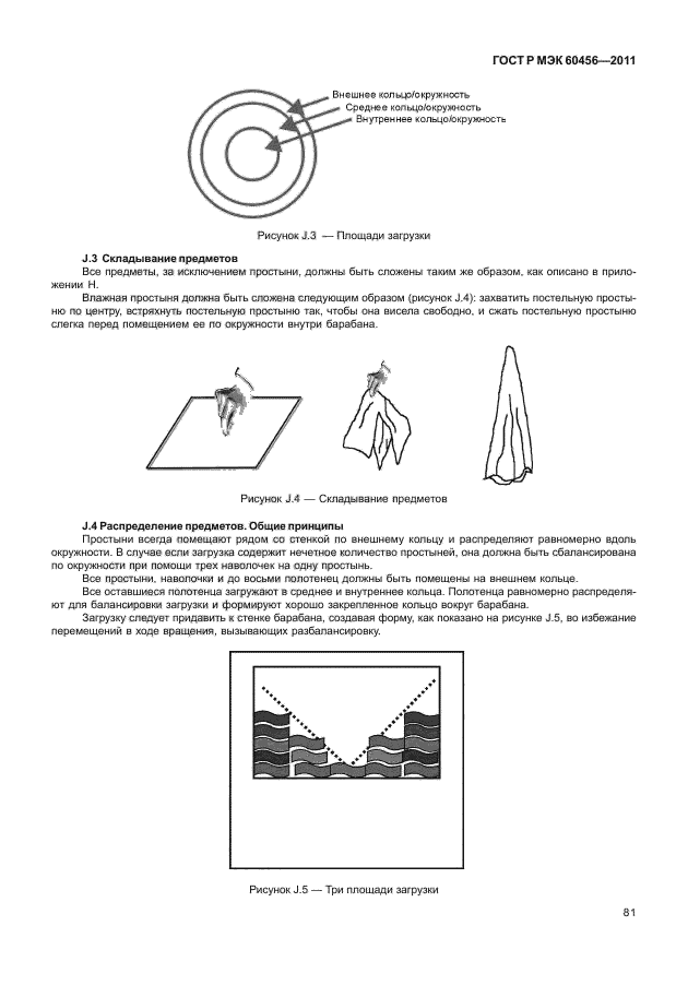 | Область и условия применения: | Настоящий стандарт устанавливает методы измерения функциональных характеристик бытовых стиральных машин с или без устройств нагрева, использующих подачу холодной и/или горячей воды. Он также распространяется на приборы для удаления воды центробежной силой (отжимные центрифуги) и применяется к приборам для стирки и сушки тканей (стирально-сушильные машины) с учетом их соответствующих функций стирки. Настоящий стандарт также распространяется на стиральные машины, где указано на отсутствие применения моющего средства для нормального использования.