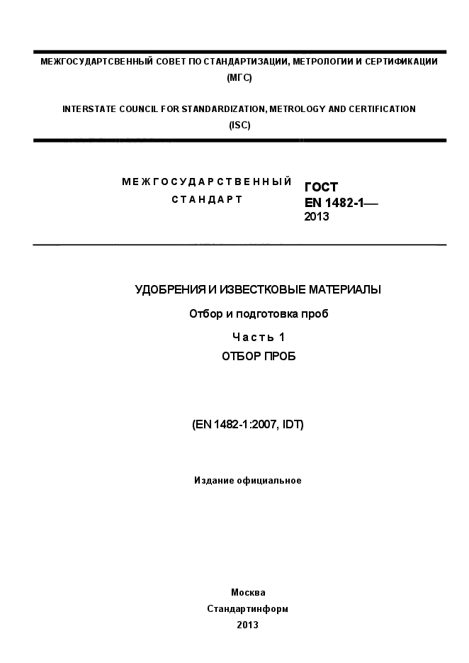 | Обозначение: | ГОСТ EN 1482-1-2013 |