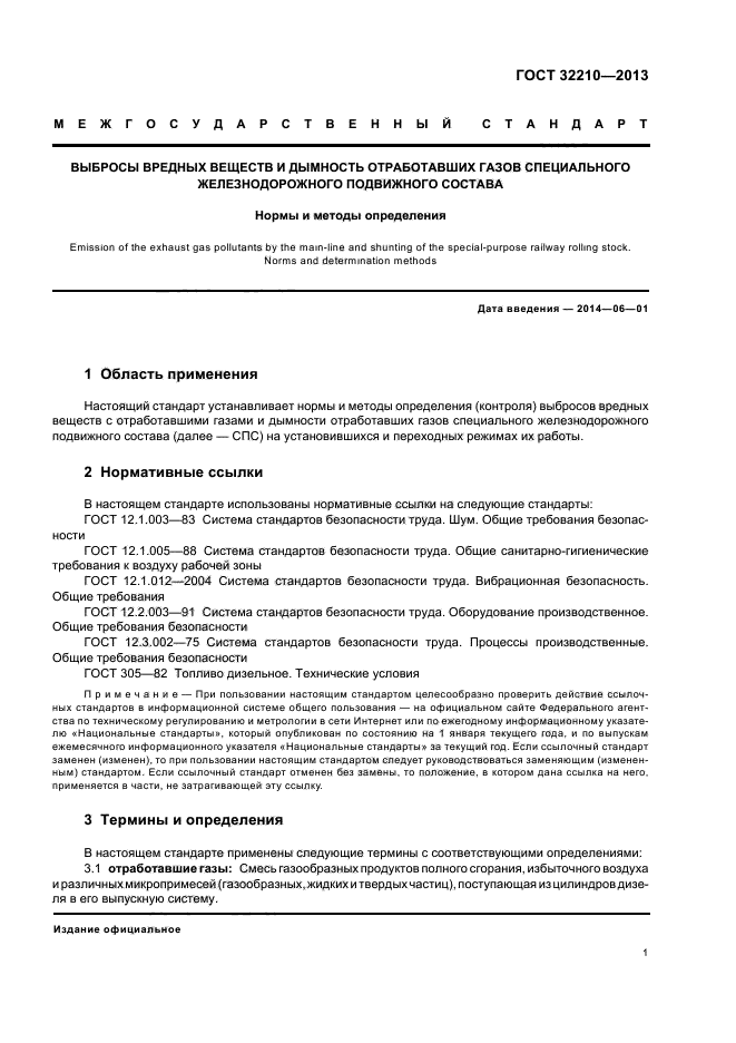 | Название рус.: | Выбросы вредных веществ и дымность отработавших газов специального железнодорожного подвижного состава. Нормы и методы определения |
