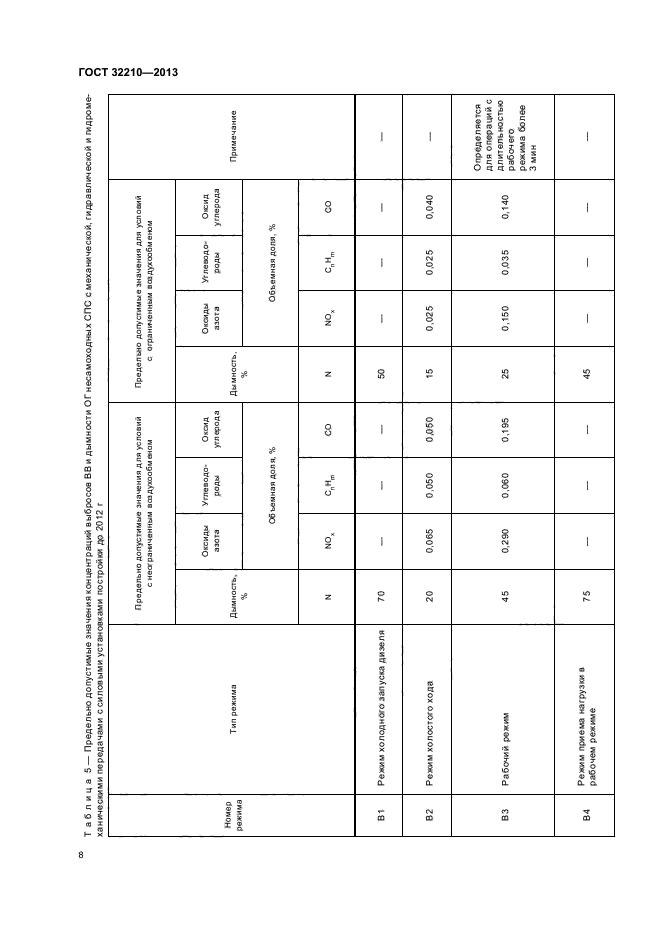 | Область и условия применения: | Настоящий стандарт устанавливает нормы и методы определения (контроля) выбросов вредных веществ с отработавшими газами и дымности отработавших газов специального железнодорожного подвижного состава на установившихся и переходных режимах их работы |