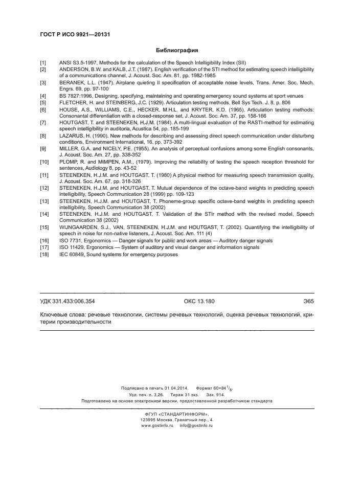 | Название рус.: | Эргономика. Оценка речевой связи |
